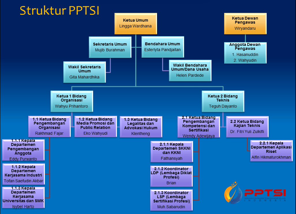 Sebagai organisasi resmi dengan Akta Notaris NOMOR 15 TAHUN 2016, PPTSI atau Perkumpulan Profesi Telekomunikasi Seluler Indonesia adalah wadah berhimpunnya para profesional di bidang telekomunikasi selular sebagai pelaksana pembangunan dibidang telekomunikasi dan dalam rangka pembinaan dan pengembangan profesi anggota, guna menunjang Pembangunan Nasional dan Daerah demi tercapainya masyarakat adil dan makmur.